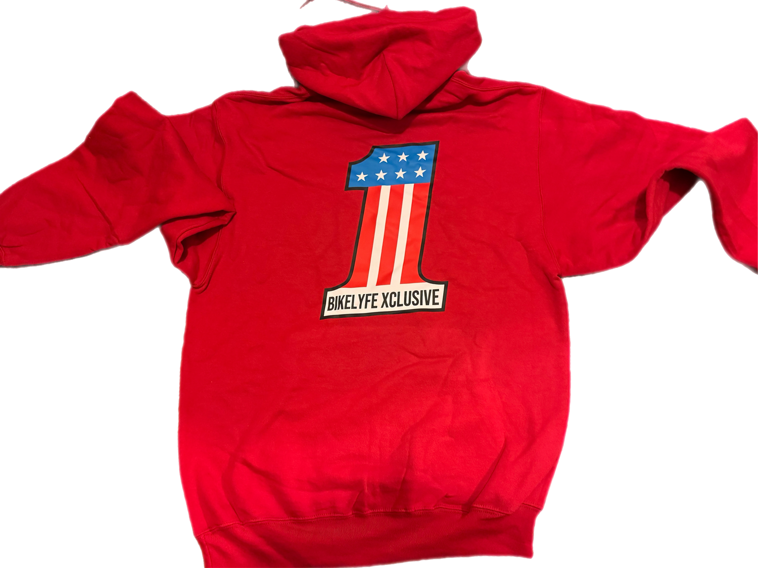 The #1 Bikelyfe Xclusive Pullover Hoodie is a must-have for any biking enthusiast. This xclusive hoodie features a unique HD-inspired #1 logo with our twist, along with the iconic American flag inside the logo. But it's not just about the design - this hoodie is made from soft and comfortable materials for the ultimate riding experience
